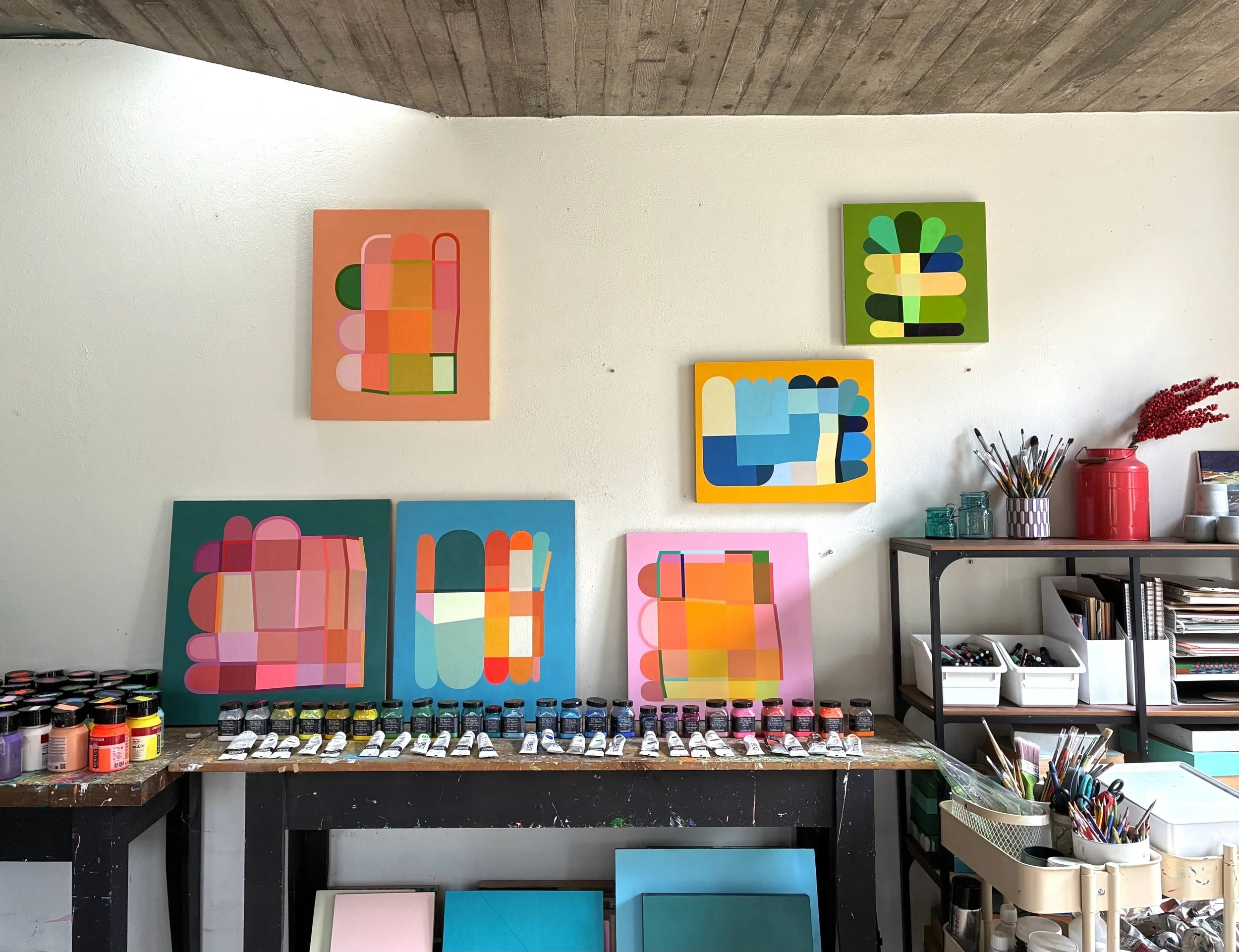 Naomi is an abstract painter creating vibrant, textured compositions in acrylics on wood panels celebrating color and form.